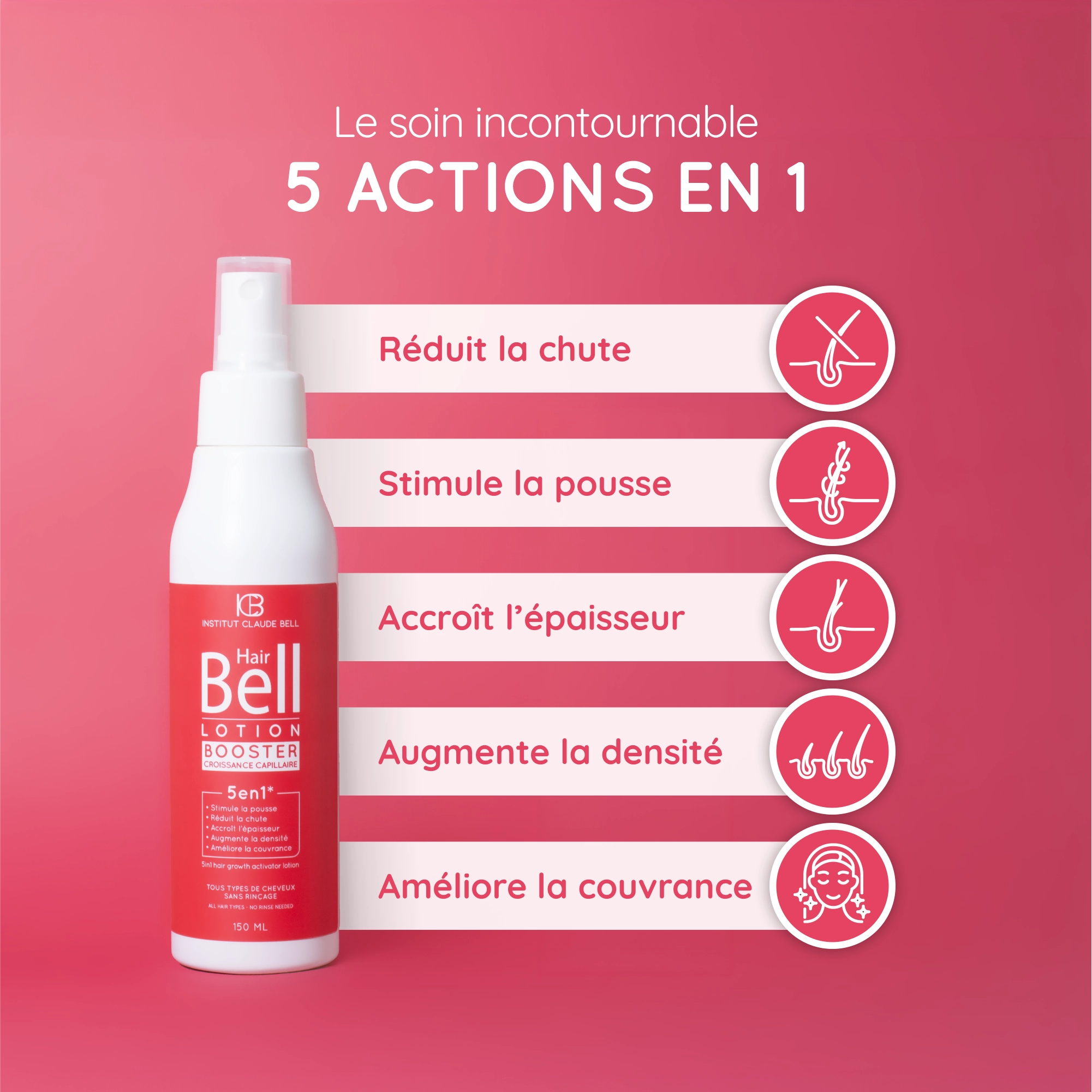 La lotion HAIRBELL, une formule exclusive développée autour de l’actif Baicapil ™, véritable source d’énergie pour les follicules pileux, reconnu pour freiner la chute des cheveux, et obtenir des cheveux plus longs, plus couvrants et plus résistants.