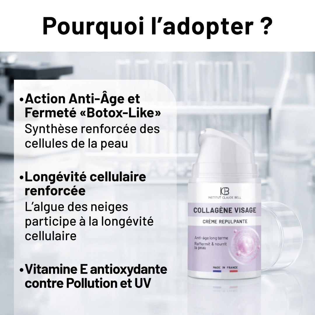 Appliquez la crème collagène matin et soir sur une peau propre et sèche. Réalisez un massage délicat jusqu’à absorption complète du produit.